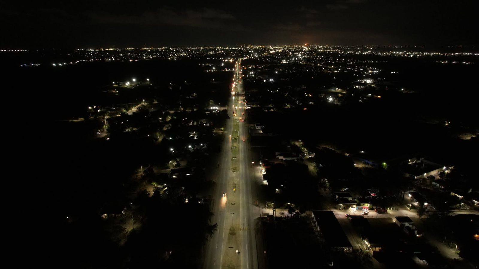 “Les presento la nueva iluminación solar autónoma que recorre desde la Cuarentenaria hasta el puente de la esperanza, pasando por la entrada a Felipe Carrillo Puerto, Los Pinos, Unidos Avanzamos, Diana Laura Riojas, colonia Monterrey y Melchor Ocampo”, señaló.
